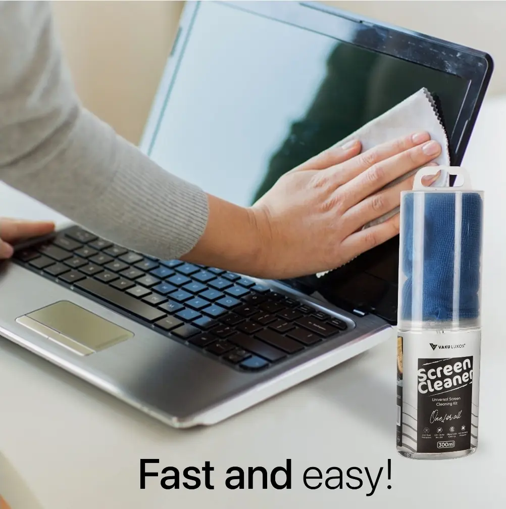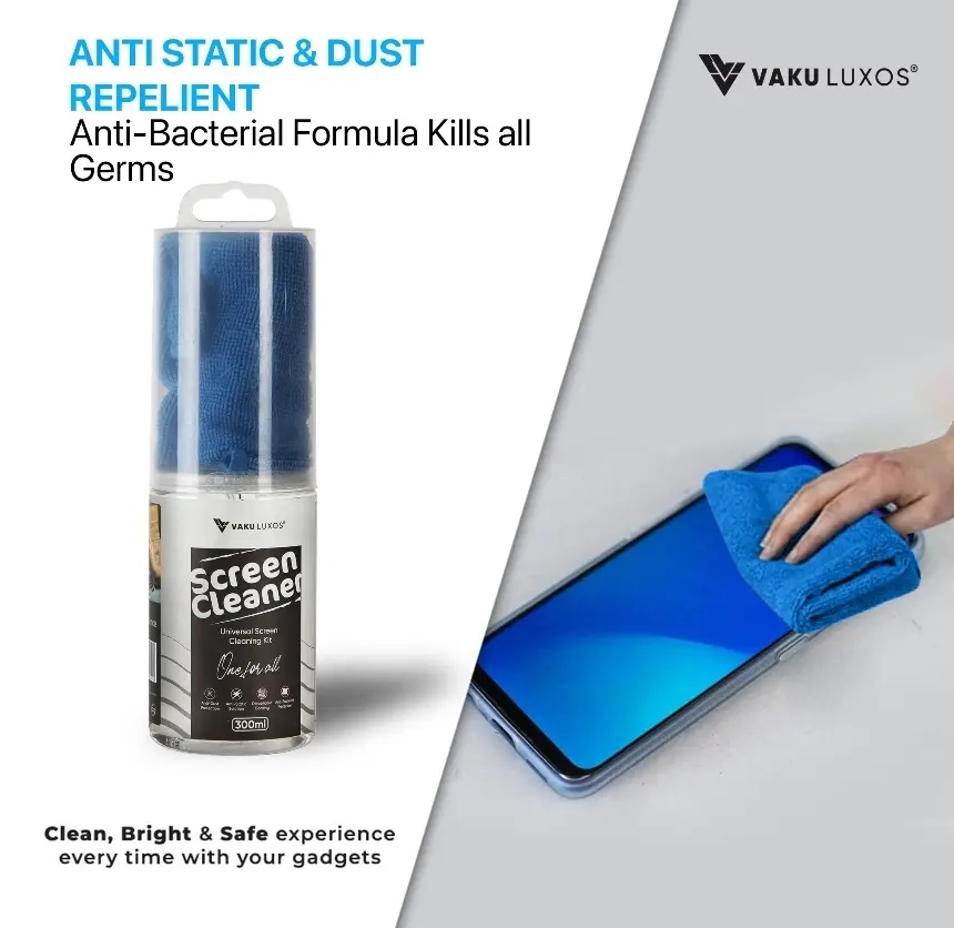 Keep your digital world crystal clear with the VAKU LUXOS® Professional 2-in-1 HD Screen Cleaner. This 300ML high-capacity cleaning solution is specifically formulated to remove fingerprints, oils, and dust without the use of harsh chemicals or alcohol. The kit includes a premium, ultra-soft microfiber cloth that traps debris rather than spreading it, ensuring a high-definition, streak-free finish. Safe for everything from delicate camera lenses and binoculars to large-screen 4K TVs and laptop displays, it’s the professional's choice for maintaining expensive optics and electronics.