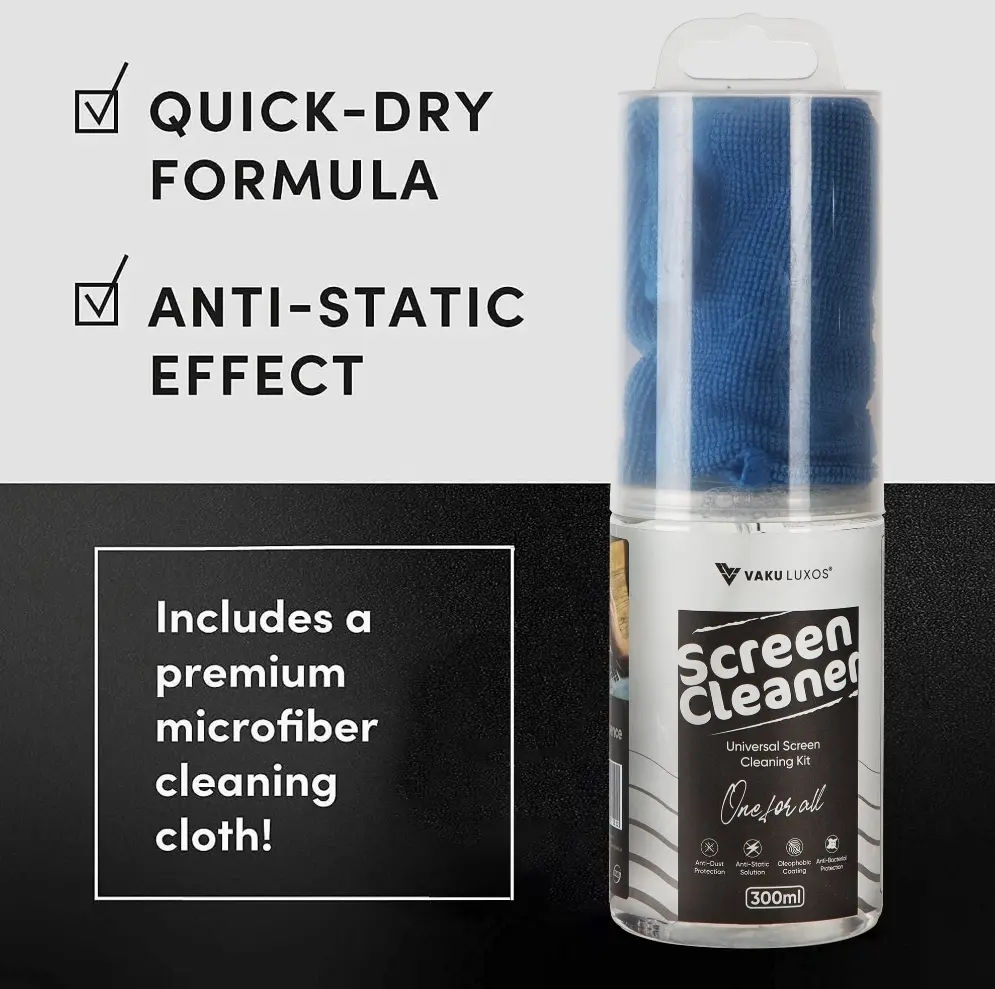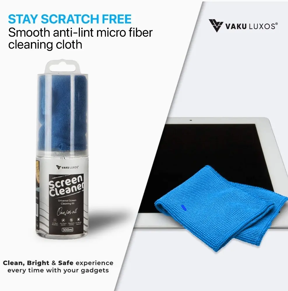 Keep your digital world crystal clear with the VAKU LUXOS® Professional 2-in-1 HD Screen Cleaner. This 300ML high-capacity cleaning solution is specifically formulated to remove fingerprints, oils, and dust without the use of harsh chemicals or alcohol. The kit includes a premium, ultra-soft microfiber cloth that traps debris rather than spreading it, ensuring a high-definition, streak-free finish. Safe for everything from delicate camera lenses and binoculars to large-screen 4K TVs and laptop displays, it’s the professional's choice for maintaining expensive optics and electronics.